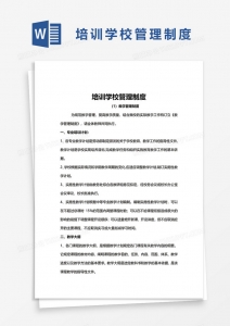 本作品内容为培训学校管理制度word模板, 格式为 docx, 大小1 MB, 页数为42, 请使用软件Word(2010)打开, 作品中文字及图均可以修改和编辑,图片更改请在作品中右键图片并更换,文字修改请直接点击文字进行修改,也可以新增和删除作品中的内容
