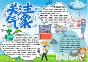 蓝绿色卡通风格气象小报手抄报关注气象电子小报word模板